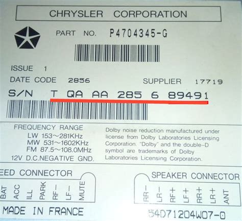 Serials For These Car Models Are Located On The Back Of The Radio.